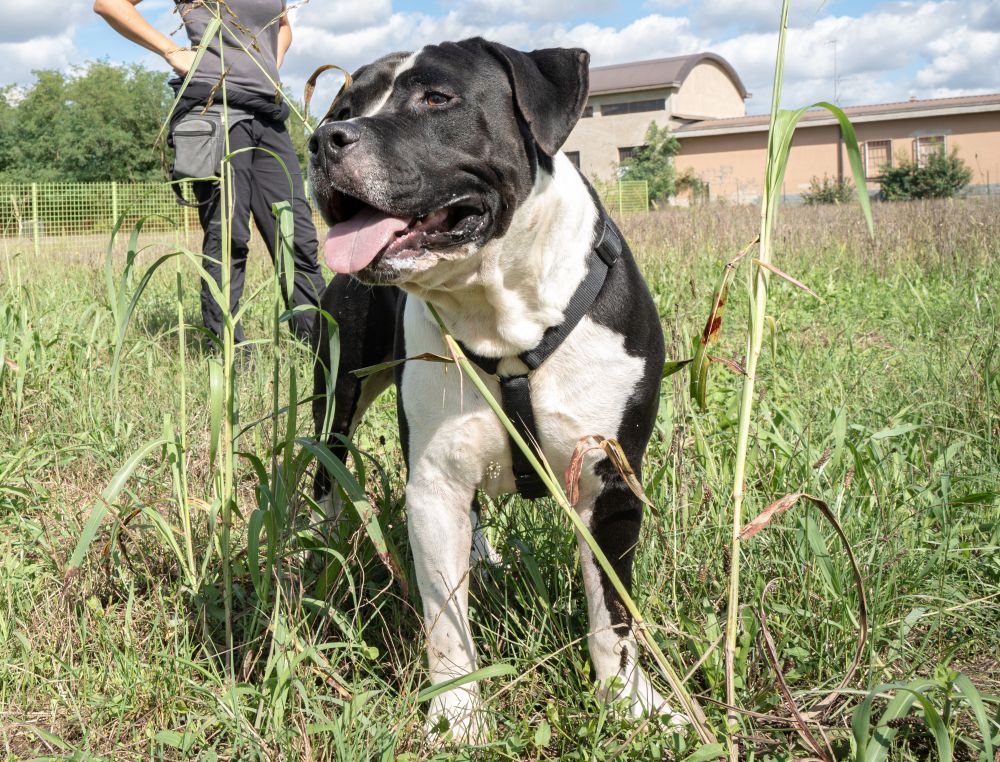 Fino a pochi mesi fa, le giornate di Raymond erano tutte uguali: le trascorreva all’aperto, senza un riparo, che ci fosse il sole o piovesse. Nessuno si prendeva cura di lui, non aveva cibo e acqua tutti i giorni ma soltanto quando i suoi ex “compagni umani” si ricordavano della sua esistenza. Grazie ai nostri volontari e allo Sportello Maltrattamenti LAV di Verona, non appena ci hanno segnalato la sua situazione, siamo intervenuti per portarlo in salvo. Ci è stato ceduto senza resistenze da chi avrebbe dovuto prendersi cura di lui, come se fosse un oggetto che non serve più. Per fortuna, oggi la vita di Raymond è completamente diversa. Il nostro amico è un simil Amstaff: quando lo abbiamo preso in affido, la sua situazione clinica era complessa: soffriva di alopecia e aveva chiazze rosse sul muso, sull’addome, sulle cosce e intorno ai genitali, con fuoriuscite purulente. Gli esami avevano rivelato anche la presenza di leishmania, otite bilaterale, malassezia, parassiti intestinali. Il veterinario ha prescritto una terapia farmacologica che abbiamo seguito e i miglioramenti sono stati evidenti fin da subito. La sua pelle non è più arrossata, il pello è molto più bello e folto. Dal punto di vista dermatologico, Raymond continua a essere seguito da uno specialista, e periodicamente lo portiamo a far visitare, ma le sue condizioni sono stabili. Inoltre, è un soggetto allergico e quindi molto delicato. Per questo segue un’alimentazione specifica con cibo ipoallergenico. Per quanto riguarda la leishmaniosi, invece, è sotto controllo, come avevano evidenziato anche gli ultimi esami che avevamo effettuato.
