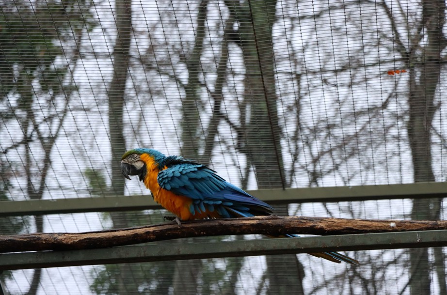 Le are sono originarie di regioni in cui i rovesci intensi fanno parte del ritmo quotidiano, e anche qui, nella loro grande voliera, continuano a muoversi con sicurezza. Dondolano sui posatoi sopraelevati, si guidano l’un l’altro nei percorsi tra i tronchi sospesi e scelgono con attenzione i punti migliori da cui osservare l’ambiente che li circonda. Proprio per garantire a loro ancora più serenità, uno dei lati della voliera è stato recentemente coperto: quello esposto alla strada di passaggio, dove il viavai di mezzi di lavoro poteva disturbare. È un cambiamento semplice, ma carico di significato: ha ridotto il rumore, aumentato la quiete e reso lo spazio ancora più protetto.