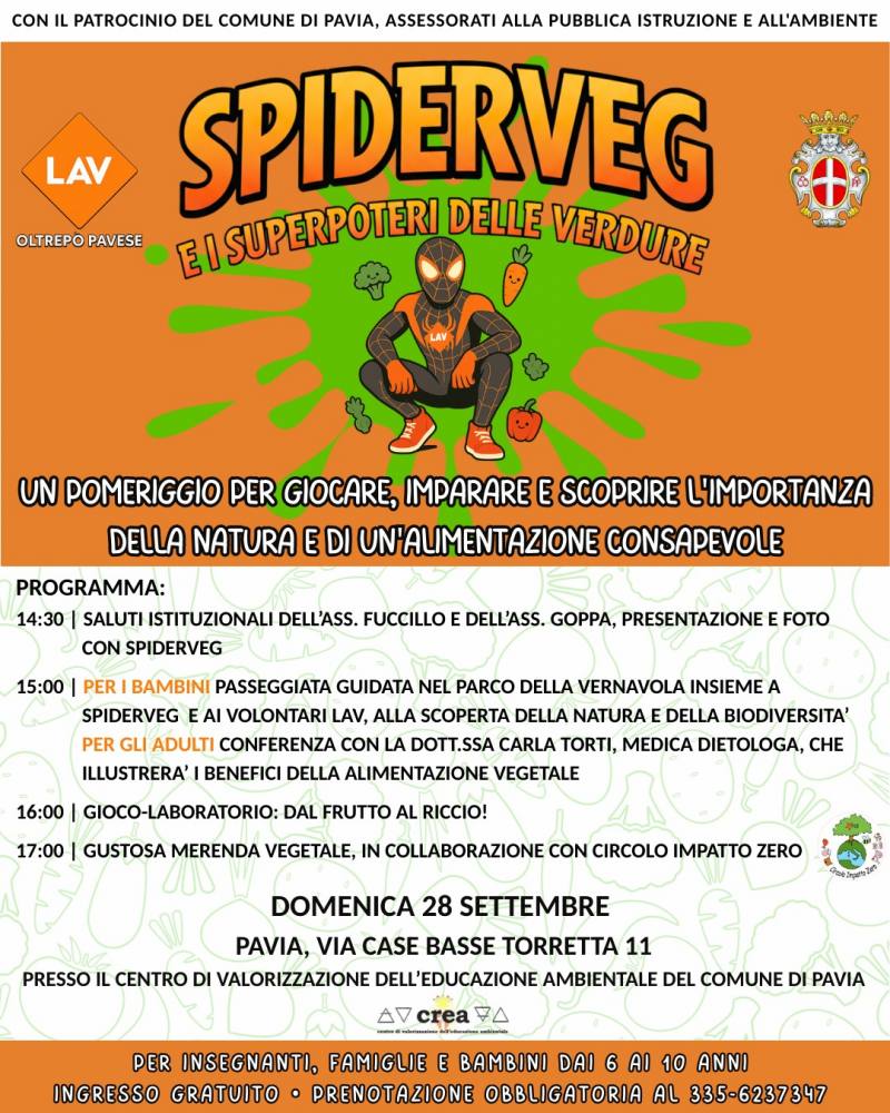 La sede LAV di Oltrepò Pavese con il patrocinio del Comune di Pavia organizza un pomeriggio per giocare, imparare e scoprire l'importanza della natura e di un'alimentazione consapevole per insegnanti, famiglie e bambini dai 6 ai 10 anni.