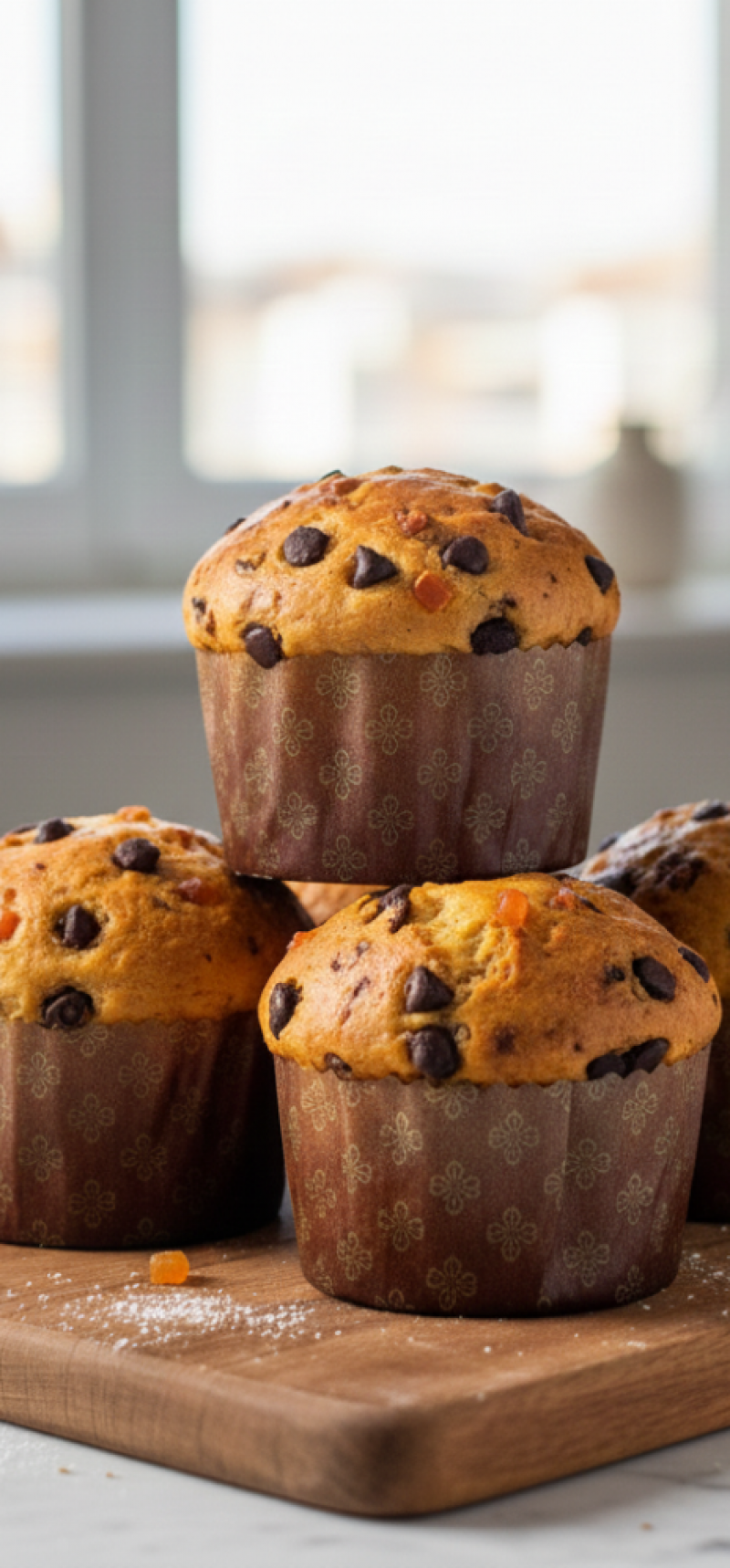 Lasciate in ammollo per 20 minuti mirtilli essiccati e cranberries in due ciotole separate, quindi scolateli e asciugateli. Sbucciate a vivo un’arancia e frullatene la polpa con i datteri denocciolati, il succo di ½ limone e un pezzetto di scorza fino a ottenere una crema liscia. Stemperate la pasta madre con il succo delle due arance rimaste e 1 cucchiaino di sciroppo di riso, quindi unite le farine miscelate. Aggiungete la crema di arancia e datteri e l’acqua necessaria per ottenere un impasto morbido e denso. Coprite e fate lievitare per circa 6 ore. Riprendete l’impasto, mescolatelo brevemente e distribuitelo negli stampi da panettoncino da 100 g, riempiendoli fino all’orlo. Spennellate con sciroppo di riso diluito, cospargete di mandorle tritate e fate riposare 1 ora. Cuocete in forno preriscaldato a 250°C, abbassando subito a 190°C, per 25–30 minuti. Se scurisce troppo, coprite con alluminio. Fate la prova stecchino, quindi spegnete il forno e lasciate raffreddare i panettoncini all’interno con lo sportello socchiuso.
